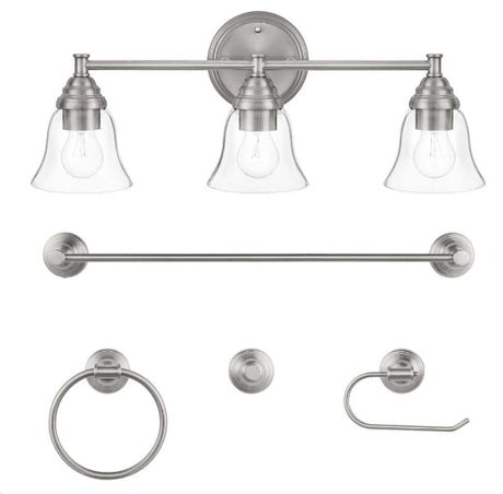 Marsden 23.5 in. 3-Light Brushed Nickel Transitional Vanity with Bathroom Hardware Kit