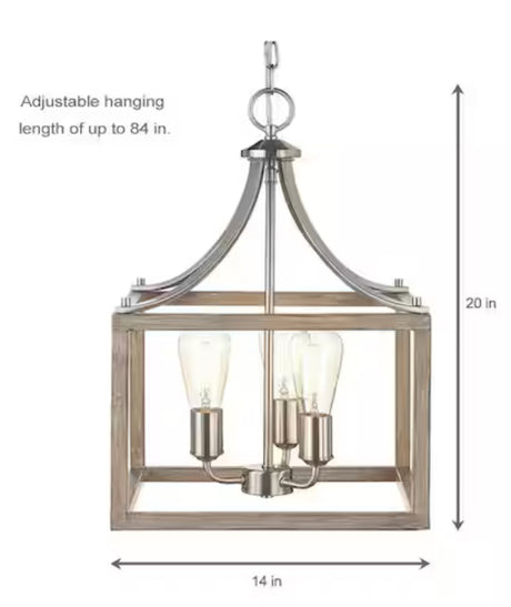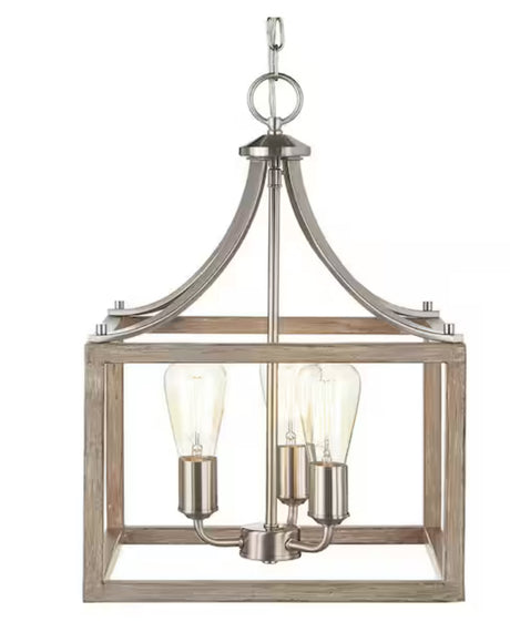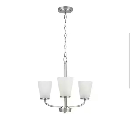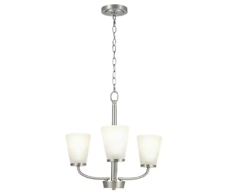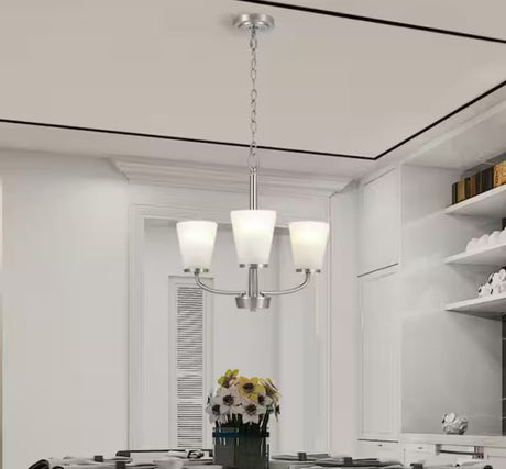 Helena 19 in 3-Light Brushed Nickel Hanging Chandelier with Frosted Glass Shades for Dining Room