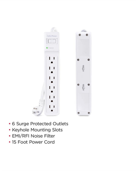 $40.00Unit price /UnavailableVery low stock (1 unit)8 ft. Cord 6-Outlet, 2.4 Amp USB-A, 15-Watt USB-C, 2100J Surge Protector