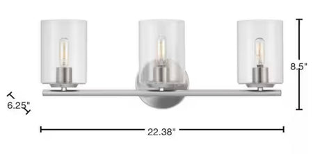 Regular price $20.00Unit priceUnavailableVery low stock (1 unit)Champlain 22.375 in. 3-Light Brushed Nickel Modern Bathroom Vanity Light with Clear Glass Shades