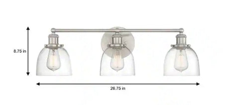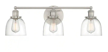 Evelyn 26.75 in. 3-Light Brushed Nickel Industrial Vanity with Clear Glass Shades