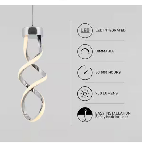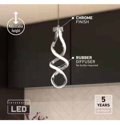 Swirl 13-Watt 1 Light Chrome Modern Integrated LED Mini Pendant Light Fixture for Kitchen Island