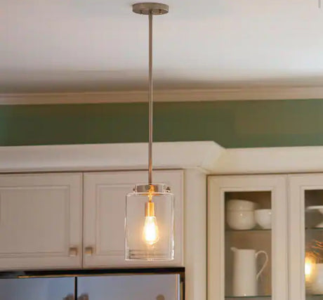 $50.00Unit price /UnavailableVery low stock (1 unit)Pavlen 1-Light Brushed Nickel Contemporary Hanging Mini Pendant with Clear Glass Shade