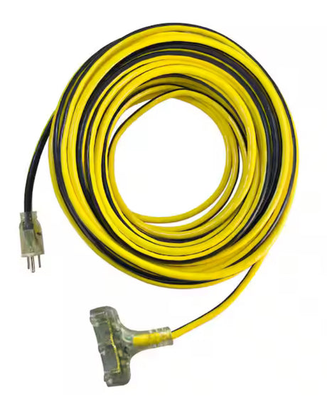 VividFlex 25 ft. 12/3 Heavy Duty Indoor/Outdoor Triple Tap Extension Cord with Lighted Ends, Yellow