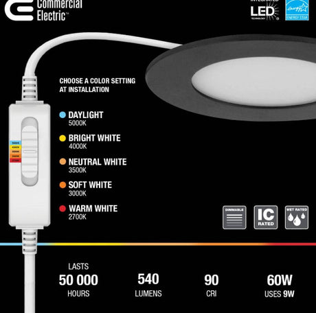 $15.00Unit price /UnavailableVery low stock (2 units)Premium Series 4 in. LED, 2-Level Lumen Select, Ultraslim Canless Recessed Light, Adjustable CCT