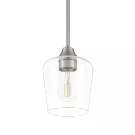 $395.00Unit price /UnavailableVery low stock (1 unit)Mullins 6.75 in. 1-Light Brushed Nickel Mini Pendant with Clear Glass Shade