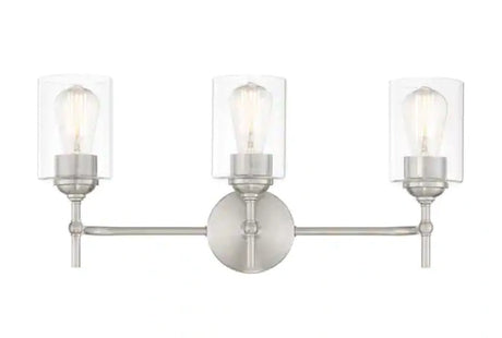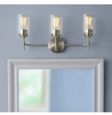 $70.00Unit price /UnavailableVery low stock (1 unit)Regan 21 in. 3-Light Brushed Nickel Bathroom Vanity Light with Clear Glass Shades
