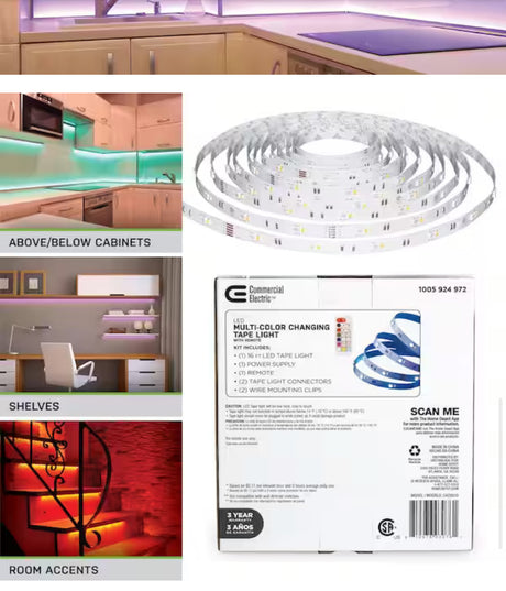 16 ft. LED White and RGB Tape Light Kit- Under Cabinet Light