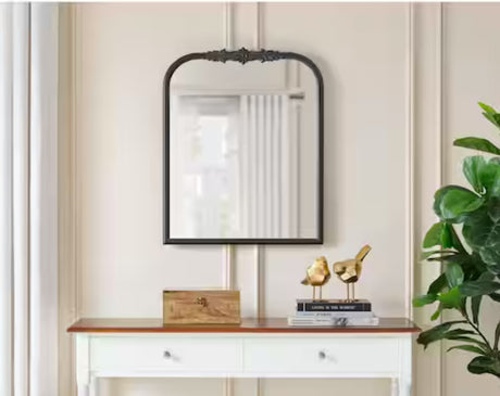 $45.00Unit price /UnavailableVery low stock (1 unit)24 in. W x 35.8 in. H Arched Black Metal Framed with Carved Decoration Vanity Mirror Wall Mirror