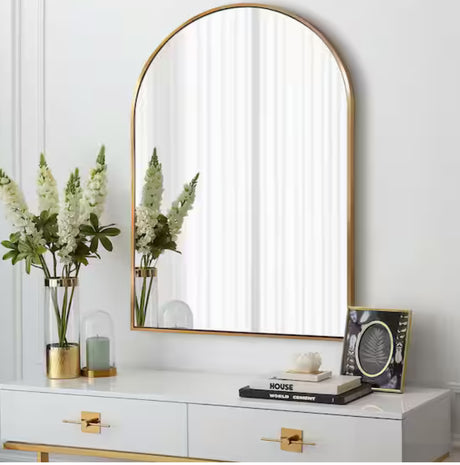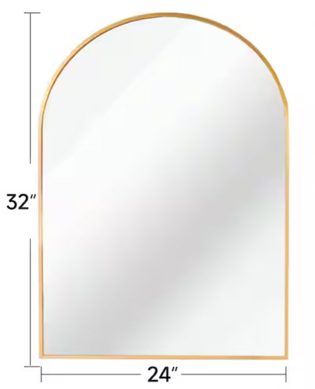 24 in. W x 36 in. H Arched Gold Aluminum Alloy Framed Wall Mirror Decorative Wall Mirror