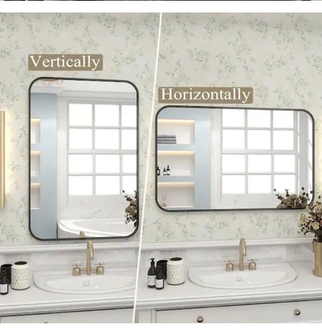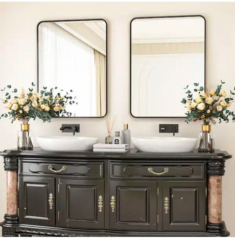 24 in. W x 36 in. H Rectangular Aluminum Alloy Framed Rounded Black Wall Mirror