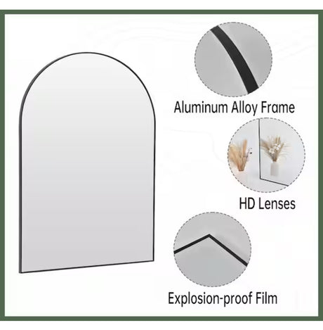 Regular price $60.00Unit priceUnavailableVery low stock (1 unit)24 in. W x 36 in. H Arched Black Aluminum Alloy Framed Wall Mirror Decorative Wall Mirror