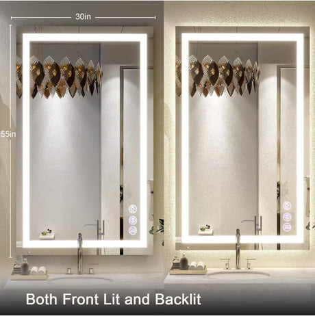 30 in. W x 55 in. H LED Light Anti-Fog Rectangular Modern Frameless White Wall Mirror