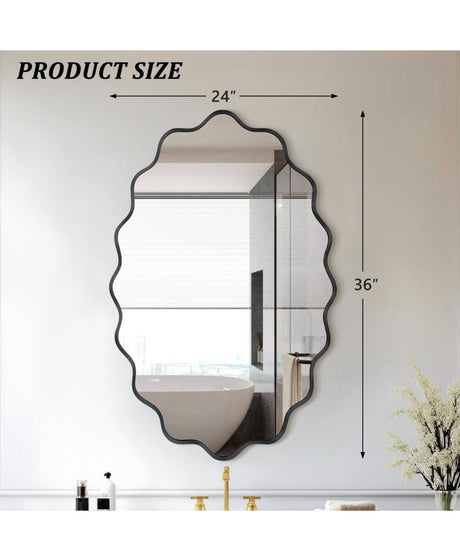 24 in. W x 36 in. H Oval Black Aluminum Alloy Framed Scalloped Wavy Wall Mirror
