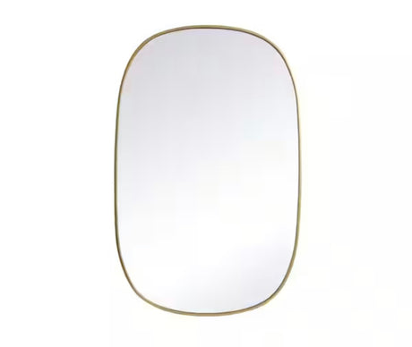 30 in. W x 40 in. H Rectangular Modern Aluminum Framed Rounded Gold Wall Mirror