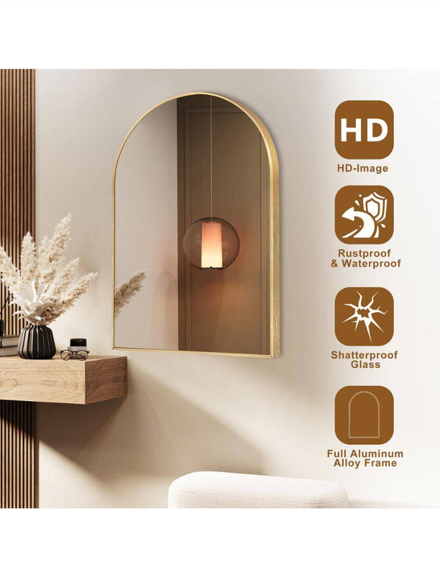 24 in. W x 36.5 in. H Arched Aluminum Arched Bathroom Wall-Mounted Vanity Mirror (2-Pieces)