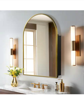 24 in. W x 36 in. H Arched Recessed/Surface Mount Medicine Cabinet with Mirror in Gold