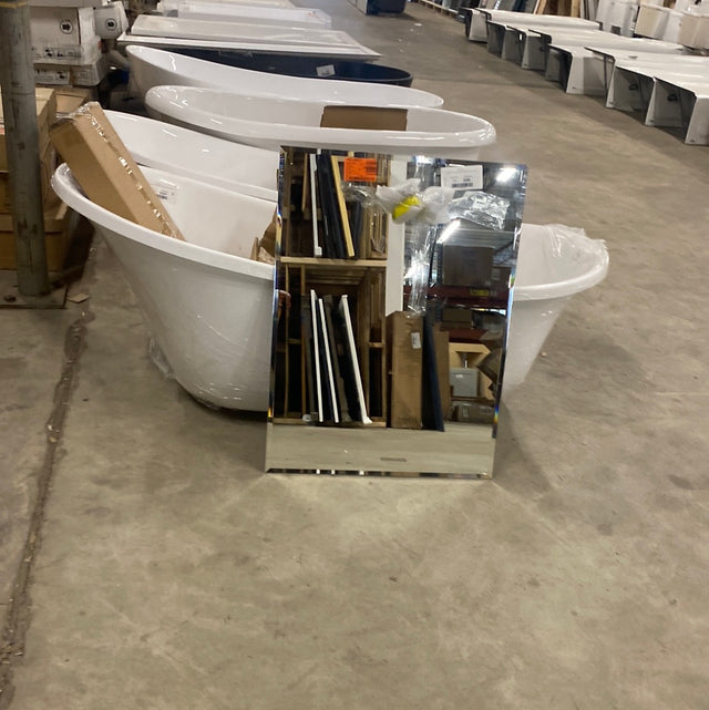 Glam 24 in. W x 32 in. H Frameless Rectangular Beveled Edge Bathroom Vanity Mirror in Satin Nickel is backordered and will ship as soon as it is back in stock.