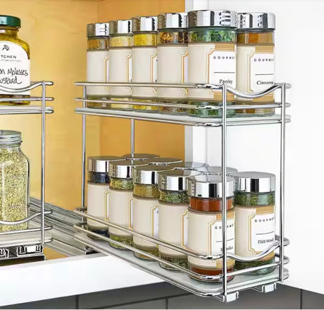 Regular price $20.00Unit priceUnavailableVery low stock (1 unit)Slide Out Spice Rack Pull Out Cabinet Organizer 4-1/4 in. Wide - Double, Chrome