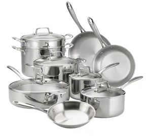 14 Piece Tri-Ply Clad Stainless Steel Cookware Set with Glass Lids