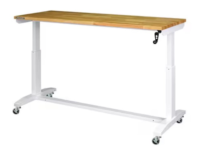 62 in. W x 24 in. D Adjustable Height White Worktable with Solid Wood Top