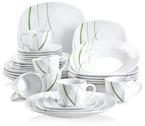 Aviva 30-Piece Modern Ivory White with Green Stripe Porcelain Dinnerware Set (Service for 6)