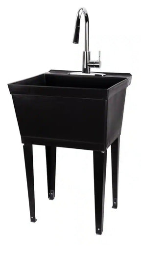 Complete 22.875 in. x 23.5 in. Black 19 Gal. Utility Sink Set with Metal Hybrid Chrome High Arc Pull-Down Faucet