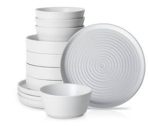 Elica 12-Piece White Stoneware Dinnerware Set (Service for 4) is backordered and will ship as soon as it is back in stock.
