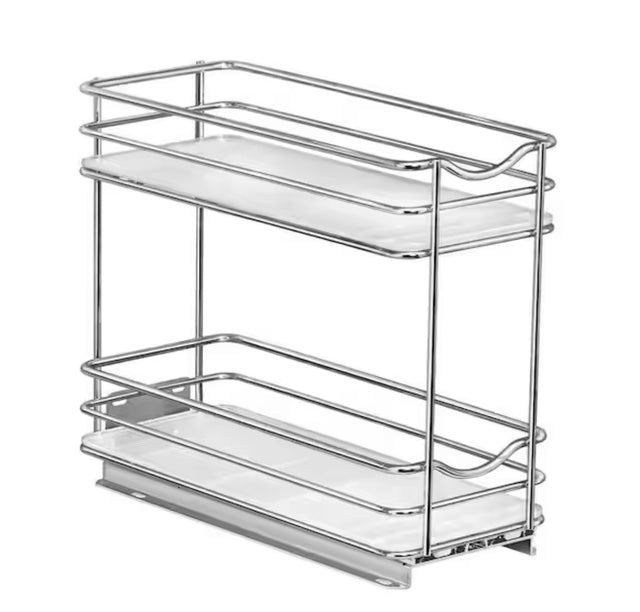 Slide Out Spice Rack Pull Out Cabinet Organizer 4-1/4 in. Wide - Double, Chrome