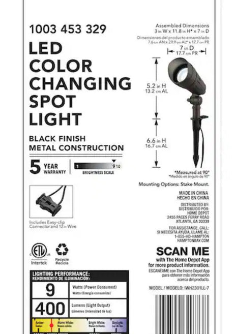 Regular price $50.00Unit priceUnavailableVery low stock (1 unit)Smart 450 Lumens Low Voltage Black LED Outdoor Spotlight Powered by Hubspace (1-Pack)