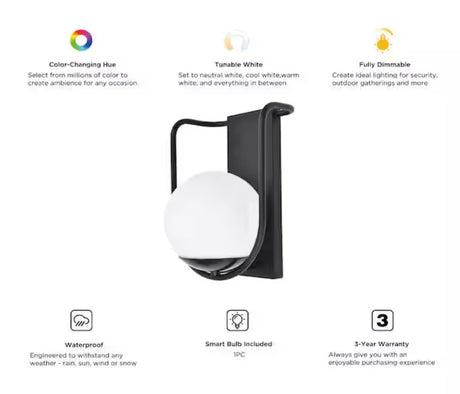 $40.00Unit price /UnavailableVery low stock (1 unit)1-Light Black Outdoor Smart WiFi Wall Mount Lantern Sconce with A19 Smart Light Bulb Included