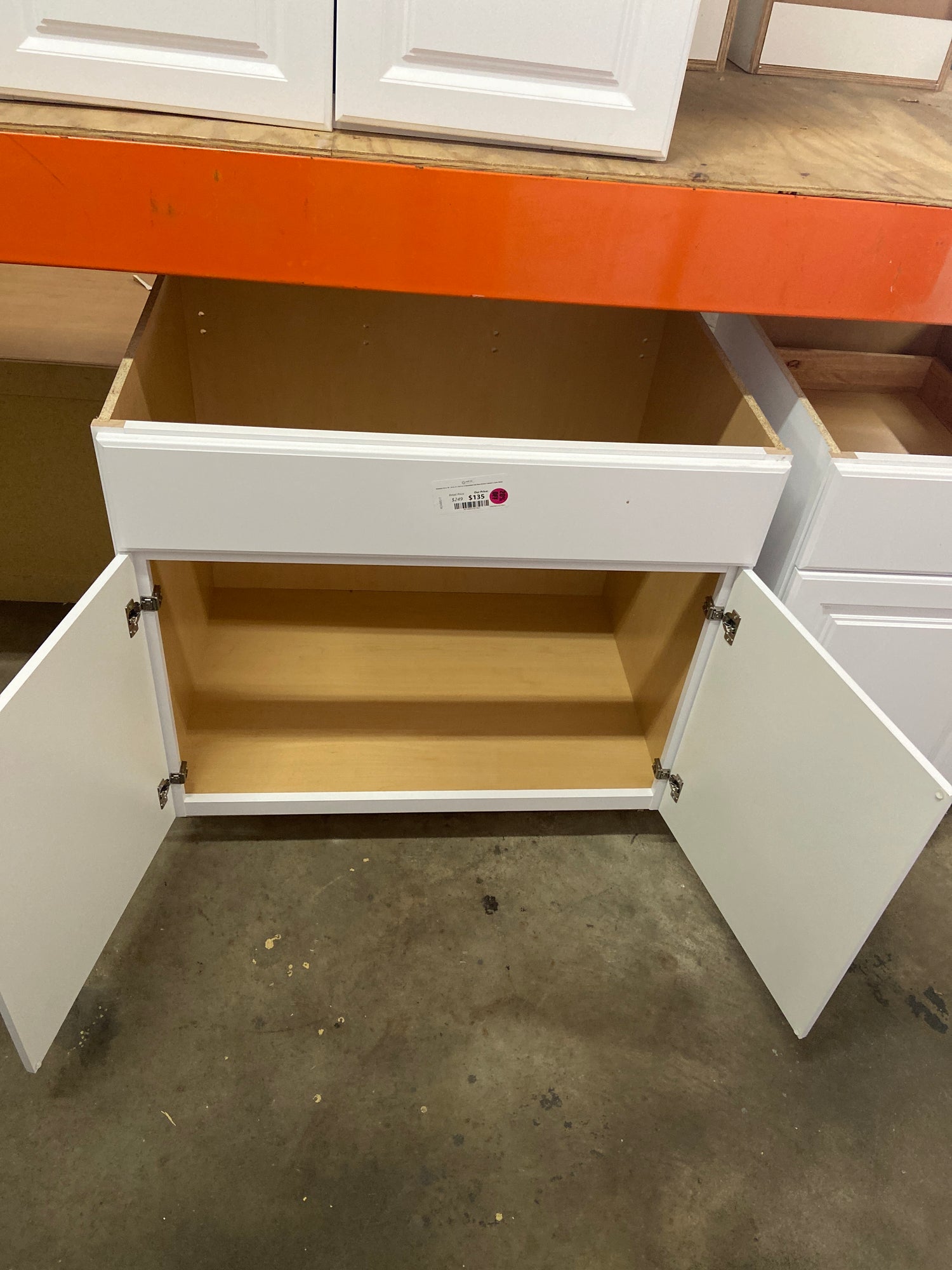 Hampton 36 in. W x 24 in. D x 34.5 in. H Assembled Sink Base Kitchen Cabinet in Satin White is backordered and will ship as soon as it is back in stock.