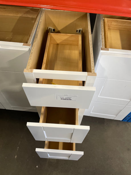 Shaker 12 in. W x 21 in. D x 34.5 in. H Assembled Bath 3-Drawer Base Cabinet in Satin White