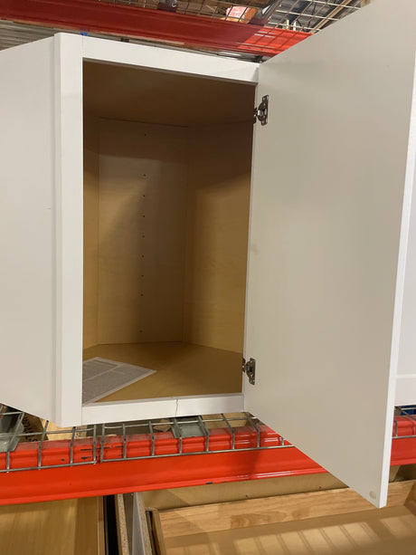 Shaker Satin White Stock Assembled Diagonal Corner Wall Kitchen Cabinet (24 in. x 30 in. x 12 in.)
