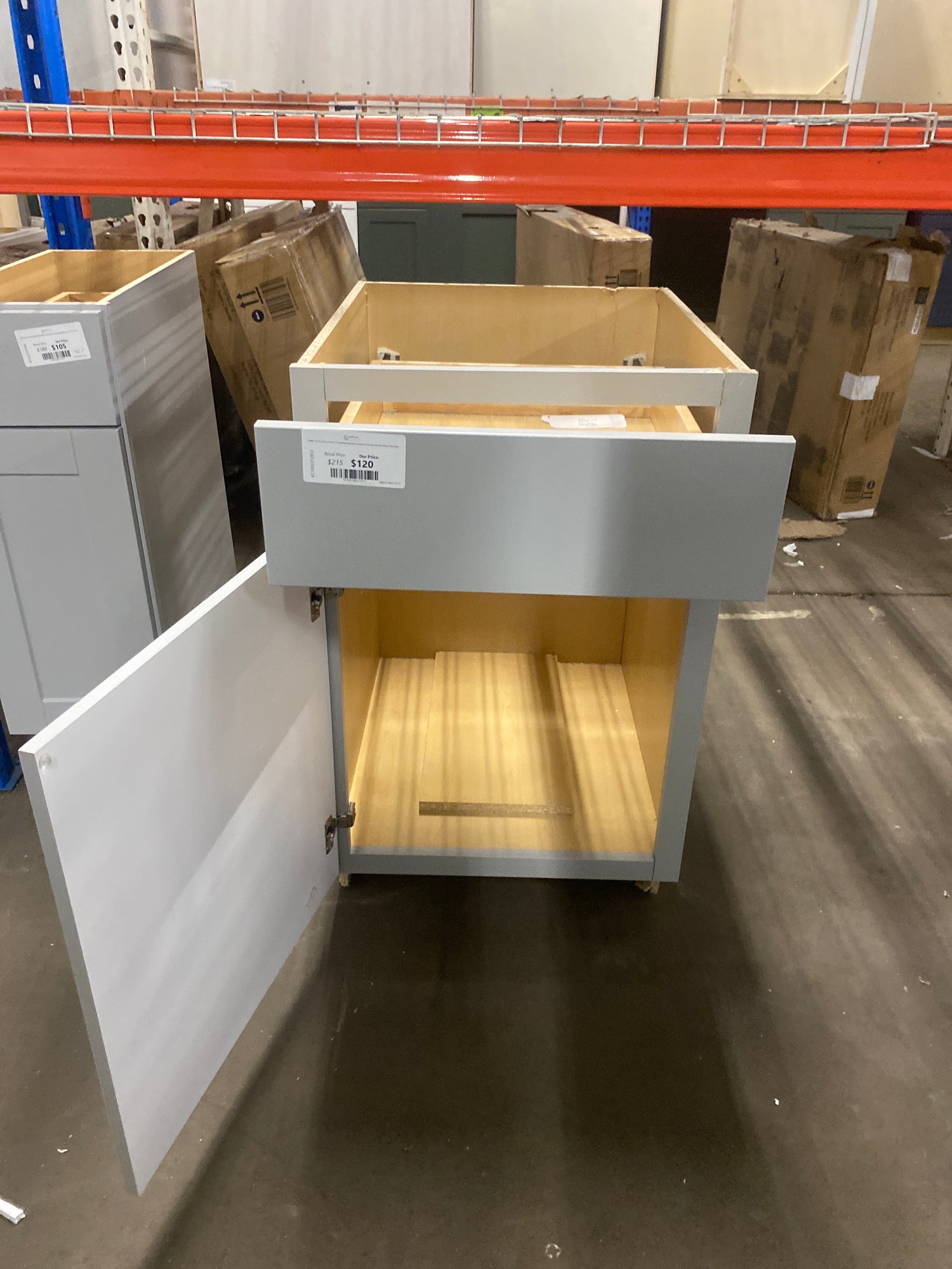 Shaker 21 in. W x 24 in. D x 34.5 in. H Assembled Base Kitchen Cabinet in Dove Gray with Ball-Bearing Drawer Glides is backordered and will ship as soon as it is back in stock.
