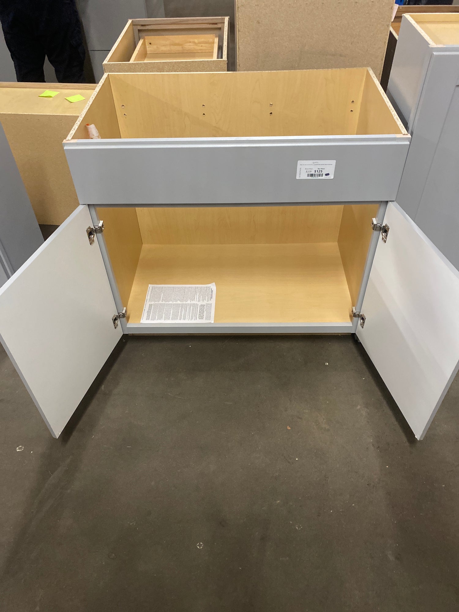 Shaker 36 in. W x 21 in. D x 34.5 in. H Assembled Bath Sink Base Cabinet in Dove Gray is backordered and will ship as soon as it is back in stock.
