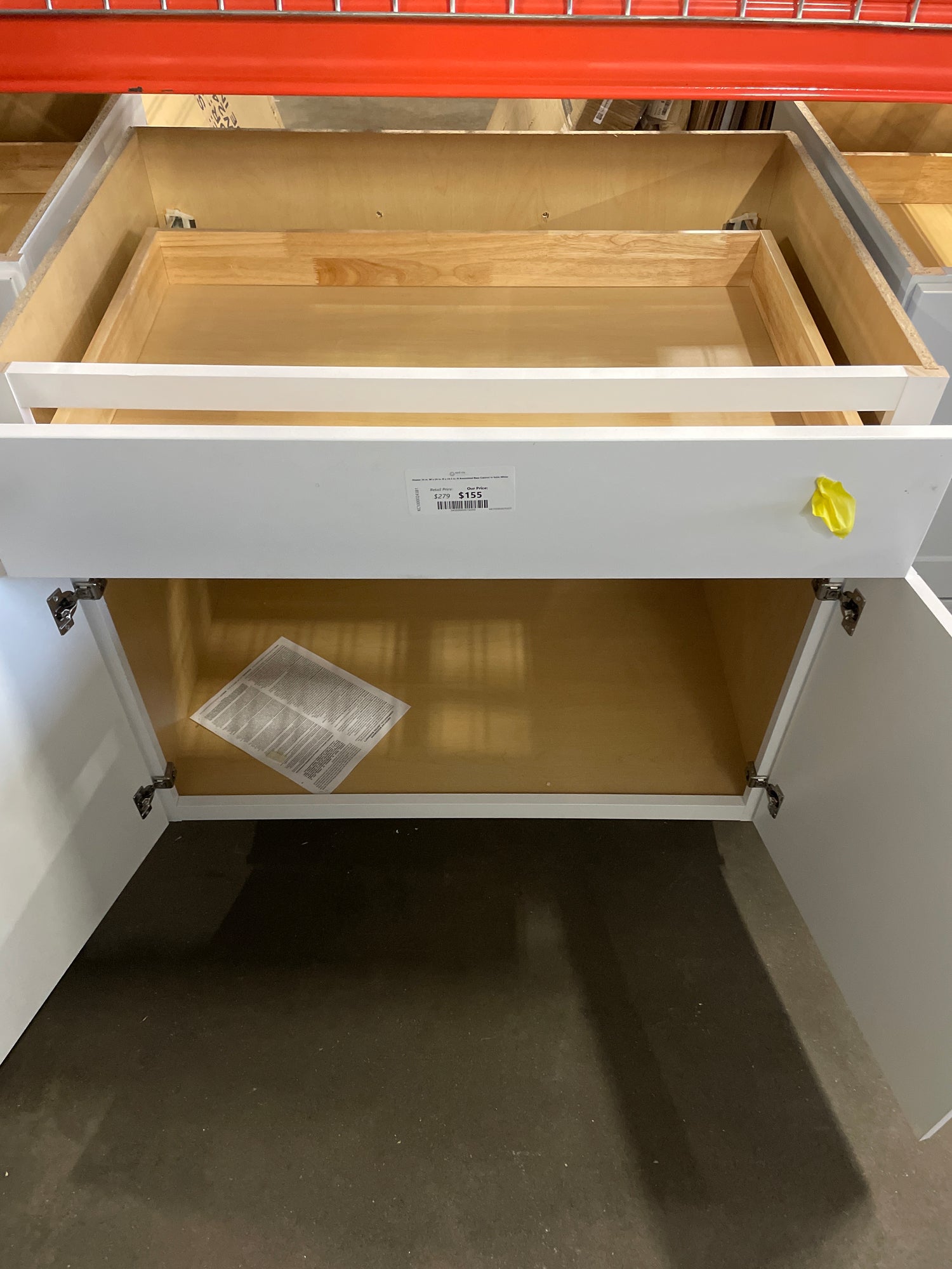 Shaker 36 in. W x 24 in. D x 34.5 in. H Assembled Base Cabinet in Satin White
