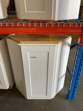 Shaker 24 in. W x 12 in. D x 36 in. H Assembled Diagonal Corner Wall Cabinet in Satin White is backordered and will ship as soon as it is back in stock.