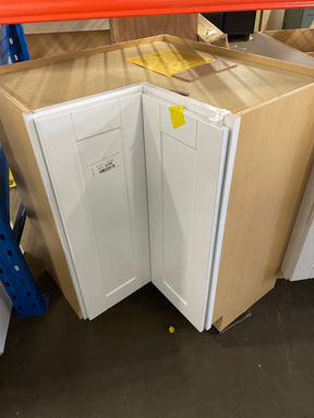 Shaker 36 in. W x 16.5 in. D x 34.5 in. H Assembled Corner Lazy Susan Base Cabinet in Satin White is backordered and will ship as soon as it is back in stock.