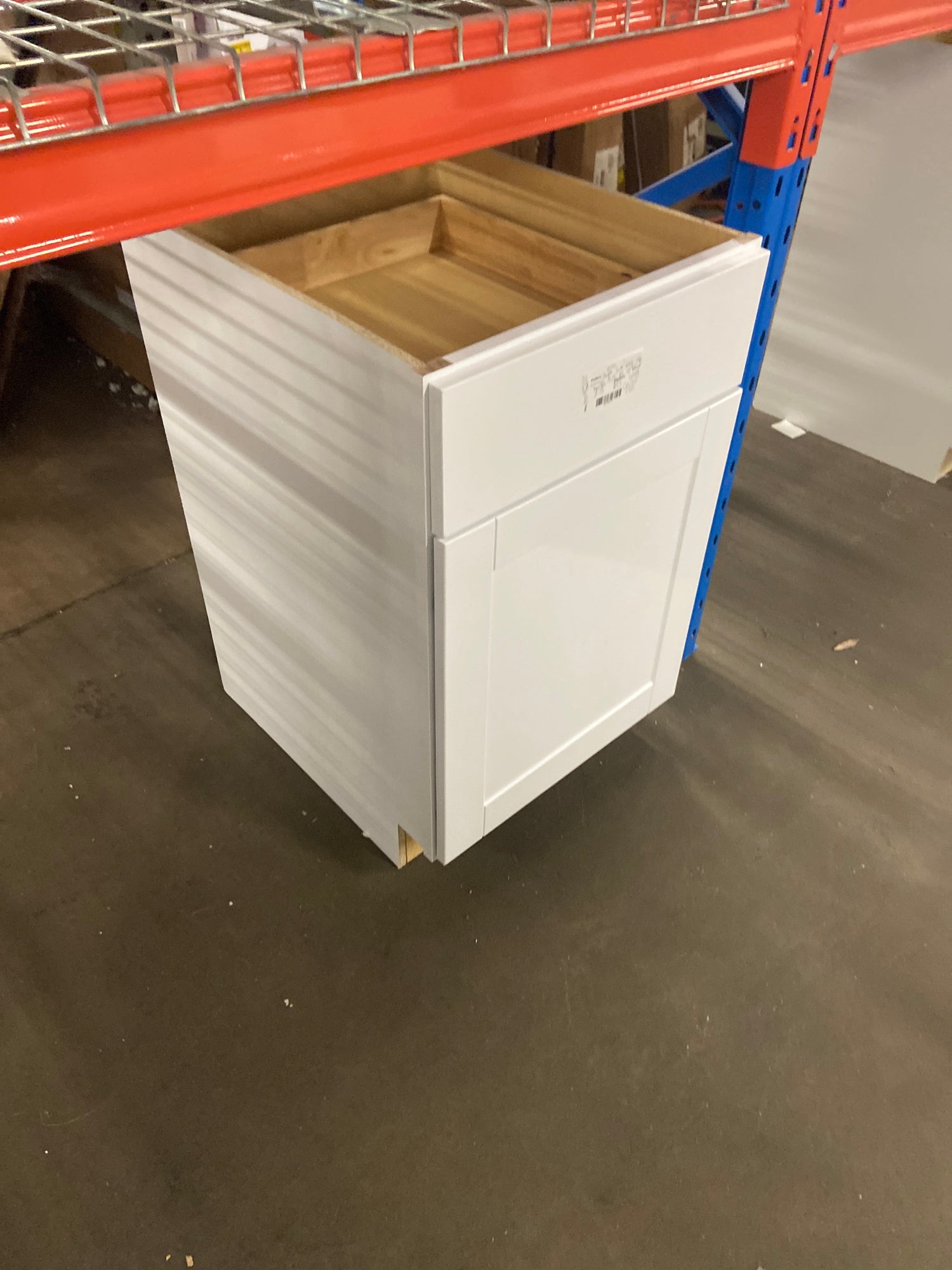 Shaker Satin White Stock Assembled Base Kitchen Cabinet with Ball-Bearing Drawer Glides (21 in. x 34.5 in. x 24 in.) is backordered and will ship as soon as it is back in stock.