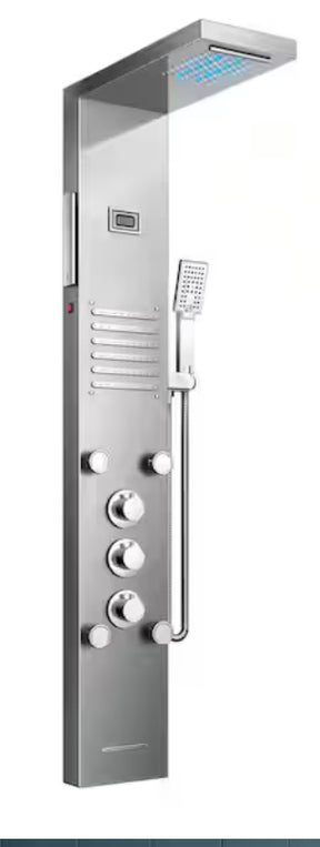 LED Rainfall Waterfall Shower Head Rain Massage System with Body Jets, Bathroom Shower Panel Tower System Brushed Nickel