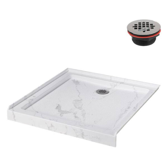 36 in. x 36 in. Alcove Acrylic Shower Pan Base in Matte Marble with Center Drain Included