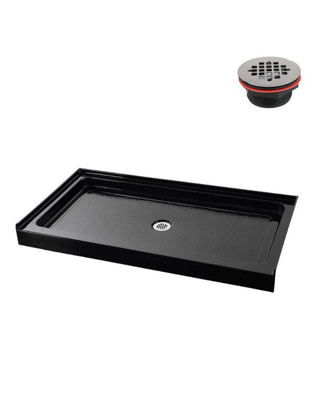 GB-2520-84-BL 60 in. x 36 in. Alcove Acrylic Shower Pan Base in Glossy Black with Center Drain, Drain Included