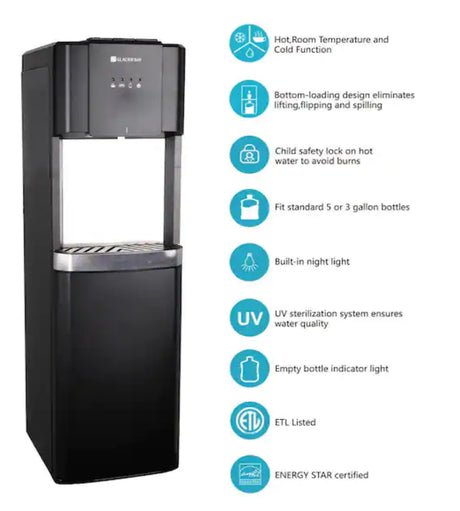 Matte Black and Stainless Steel Bottom Load Water Dispenser