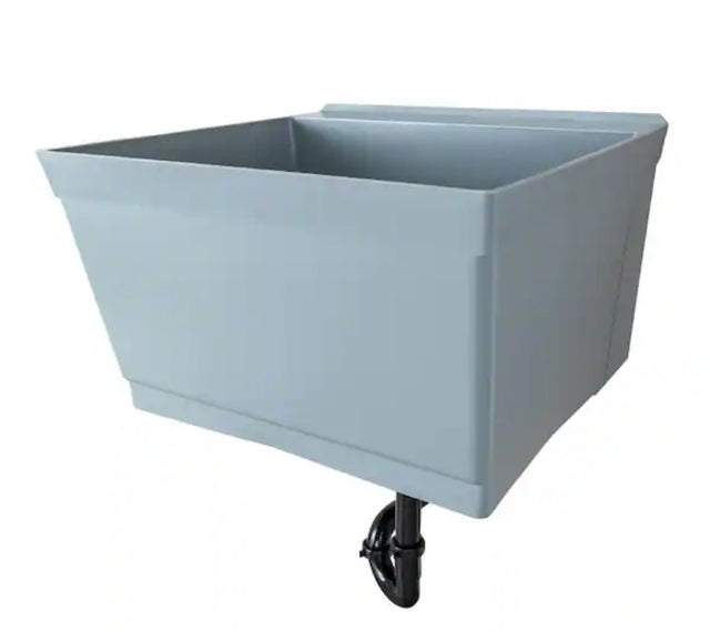 23.5 in. x 22.88 in. Grey Thermoplastic Wall Mounted Utility Sink Kit with Sink Drain P-Trap and Water Supply Lines
