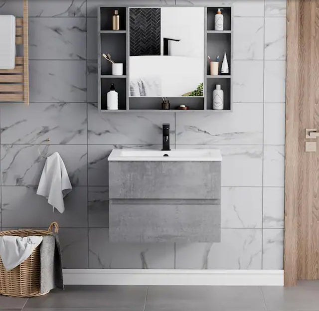 24 in. W x 18.1 in. D x 18.1 in. H Single Sink Bath Vanity in Gray with Drain Faucet Set with No Top
