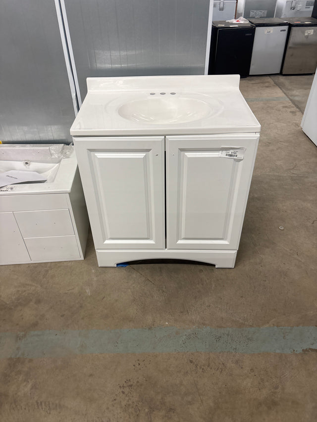 31 in. W x 19 in. D x 35 in. H Single Sink Freestanding Bath Vanity in White with White Cultured Marble Top is backordered and will ship as soon as it is back in stock.