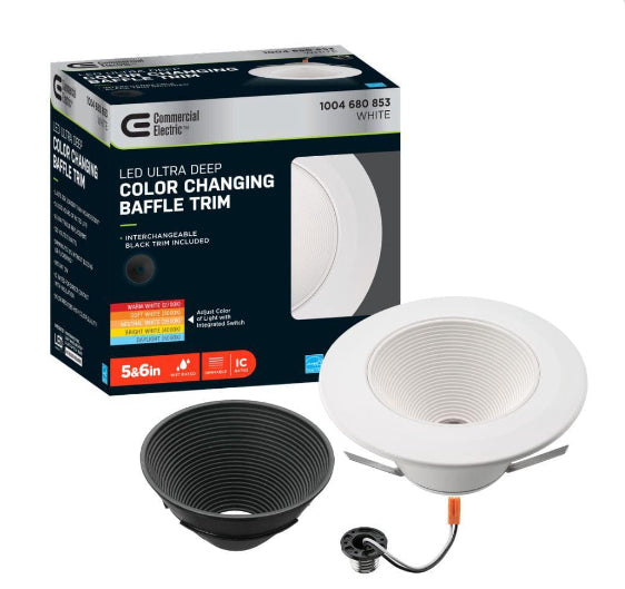 6 in. Low Glare Deep Baffle Adjustable CCT Integrated LED Recessed Light Trim 670 Lumens Wet Rated Dimmable