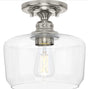 Aiken Collection 1-Light Brushed Nickel Clear Glass Farmhouse Flush Mount Light