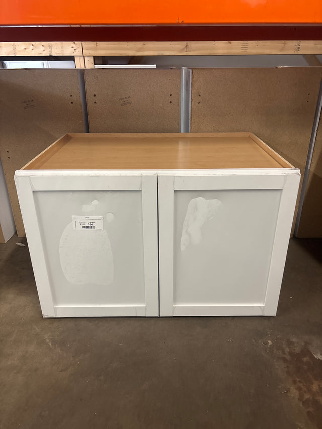 Courtland 36 in. W x 24 in. D x 23.5 in. H Assembled Shaker Wall Bridge Kitchen Cabinet in Polar White is backordered and will ship as soon as it is back in stock.